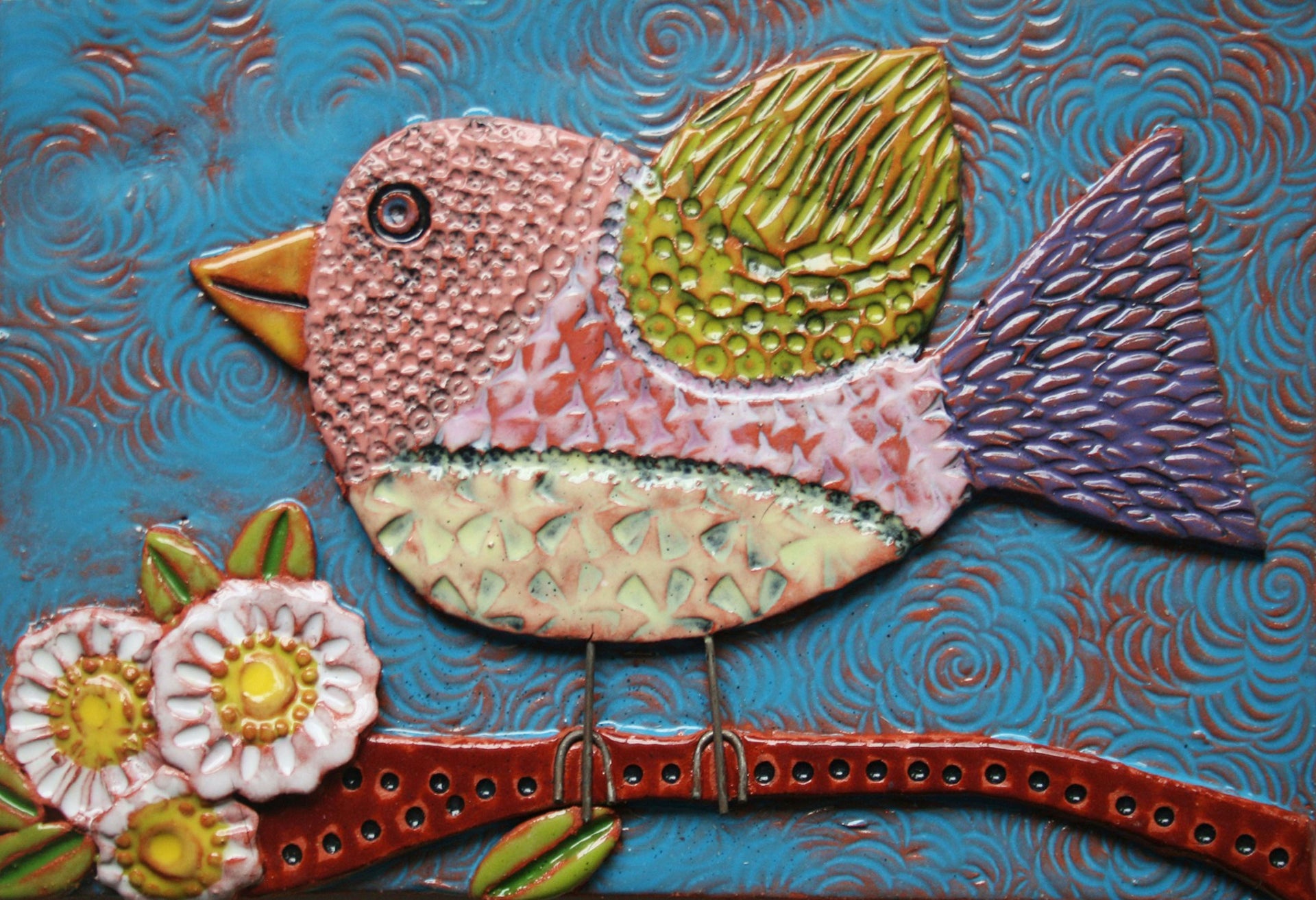 This handcrafted ceramic wall art tile measures approximately 7inches x 6 inches x 3/4 inch.  All of White Clover Kilns wall art tiles are created from slabs of clay that are cut, layered, textured and glazed, and fired in our studio .  Mary creates each piece by hand without the use of molds making each piece a unique, one of a kind artwork.  The tiles come with an embedded wire loop in the back for hanging.  If you would like your tile to be grouted onto a wall please inform us at the time of ordering so that we do not include this loop when creating your piece.